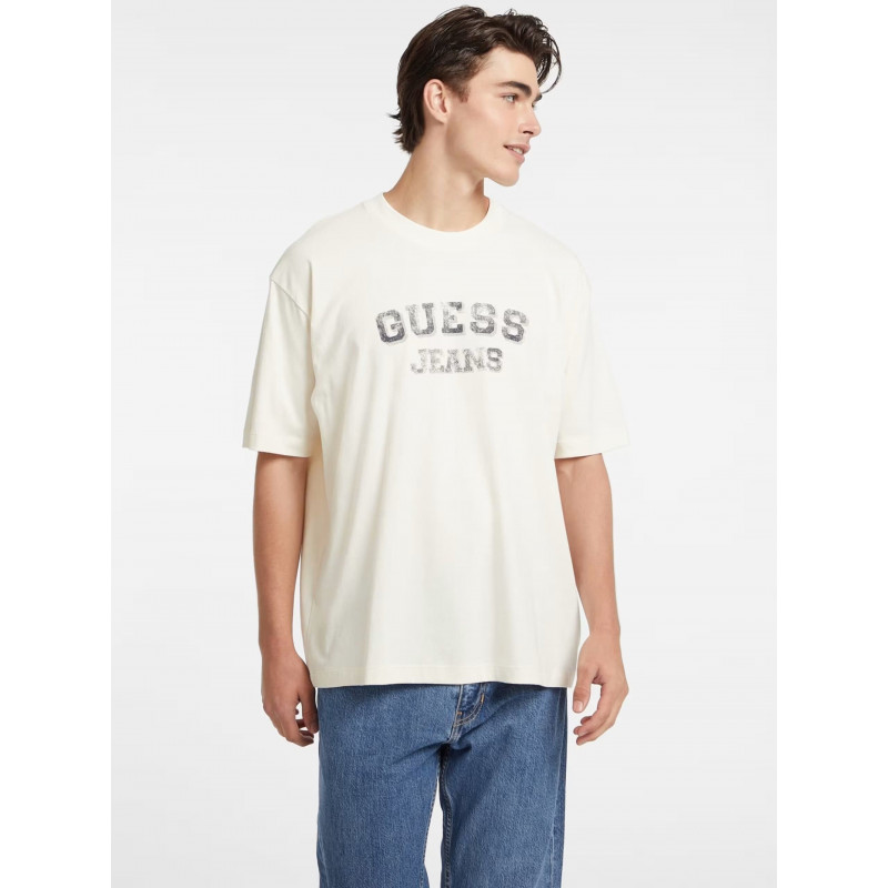 Camiseta holgada de inspiración retro con un atrevido estampado gráfico GUESS JEANS en el pecho. Confeccionada con una mezcla de algodón orgánico.