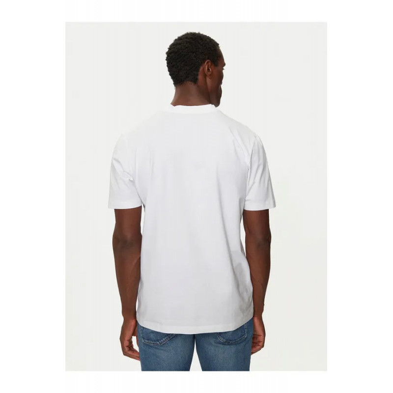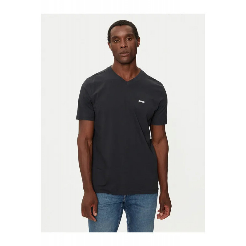 Una camiseta BOSS Hombre de estilo versátil con cuello en pico y corte recto, confeccionada en punto sencillo con logo estampado en contraste.     * Regular fit * Escote: Cuello redondo * Manga corta * Largo estándar 95% Algodón, 5% Fibra sintética elástica Referencia: 50506347 Producto 100% original. Categoría: Camisetas casual Género: Hombre Marca: BOSS Color: Negro Estilo: Casual Material: Algodón Manga: Manga corta