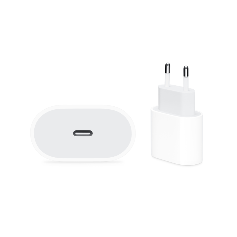 El adaptador de corriente USB-C de 20 W de Apple está pensado y fabricado para que puedas cargar tus dispositivos a grandes velocidades y en cualquier lugar.