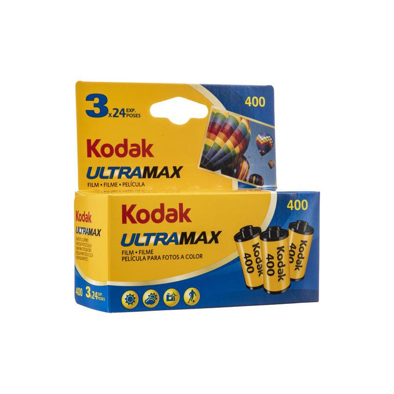 El GC / UltraMax 400 de Kodak es una película negativa de color con luz diurna de alta velocidad que ofrece una amplia latitud de exposición para una mayor versatilidad, así como una estructura de grano fino con colores consistentes y precisos. La reproducción optimizada del tono de la piel hace que esta película sea adecuada para retratos, mientras que una paleta de colores vibrante en general beneficia la fotografía general y al aire libre. Tiene una sensibilidad nominal de ISO 400/27 ° y es ideal tanto para aplicaciones de escaneo como de ampliación.