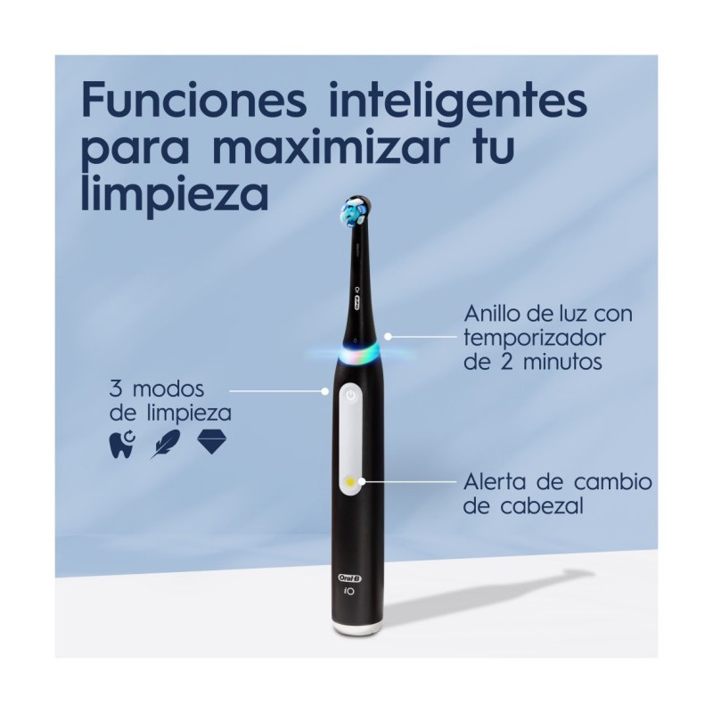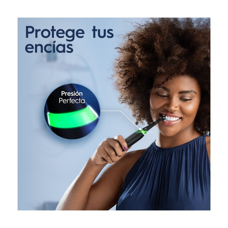 Para encías más sanas en solo una semana, elimina un 100 % más de placa que un cepillo manual con la tecnología más avanzada de Oral-B protege tus encías con el sensor de presión io, el único de oral-b que te avisa si estás aplicando la presión perfecta para una limpieza eficaz y segura.: