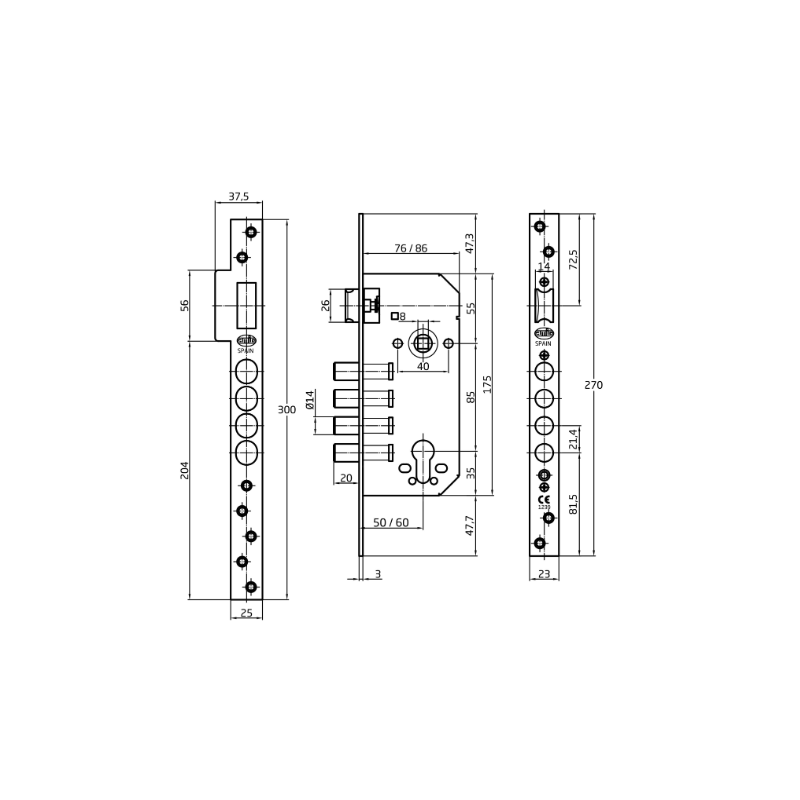 Cerradura Acero Cromo Mate 60 Mm - Modelo 100