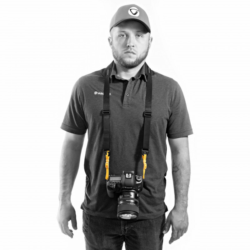 El acolchado flexible y suave es lo suficientemente ancho y grueso como para descansar siempre cómodamente alrededor de su cuello u hombro, pero no demasiado grueso y ancho como para volverse engorroso. Las correas de conexión son resistentes y fáciles de ajustar a la altura adecuada y las hebillas y correas adicionales mejoran el rendimiento al convertirse en una conexión de seguridad y estabilización adicional cuando se lleva sobre el hombro o al transformar la correa en un arnés ergonómico cuando se lleva una cámara y lente más pesada, o prismáticos.