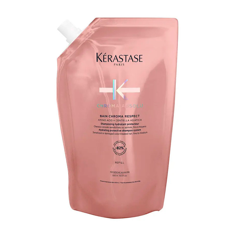 Bain Riche Chroma Respect es un champú protector* nutritivo para cabello coloreado sensibilizado y/o dañado medio o grueso. Limpia el cabello suavemente sin arrastrar el color**. Fórmula rica hidratante que suaviza la fibra para un cabello suave y brillante.
