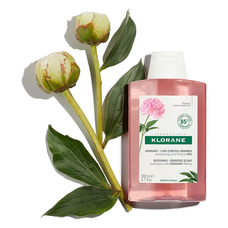 El champú a la Peonía limpia y alivia el cuero cabelludo sensible e irritado de forma inmediata.