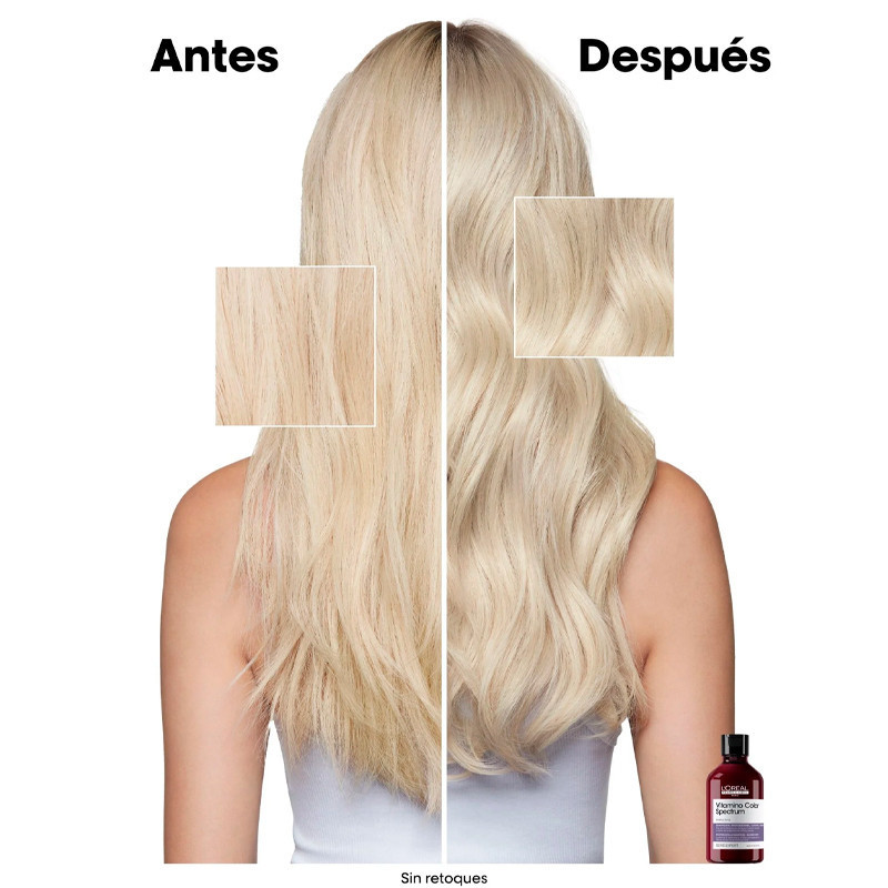Champú especializado en la neutralización de tonos amarillentos en cabello rubio, decolorado o con mechas. Enriquecido con tecnología patentada, este champú protege el color y realza su luminosidad. Su acción correctiva mejora el brillo, contraste y saturación del cabello desde el primer uso, proporcionando resultados duraderos.