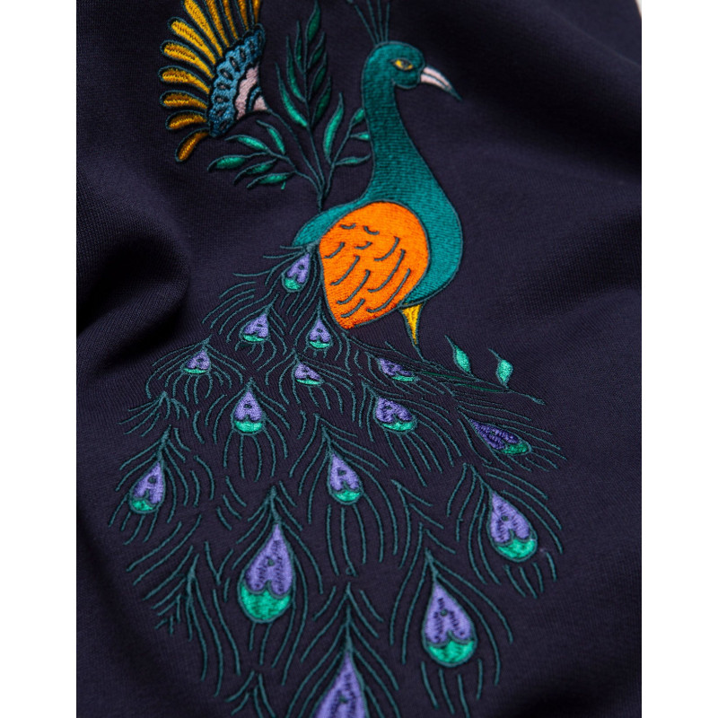 Chaqueta azul marino con parche Olow en el pecho y bordado en la espalda por el artista Henri Tattooer. Cuello Teddy, botones a presión. COMPOSICIÓN 100% algodón orgánico certificado GOTS ILUSTRACIONES Bordado ¿CÓMO LE QUEDA? Chris mide 1,84 m, pesa 68 kg y lleva una talla M. EL ARTISTA Obra del artista HENRI TATTOOER ORIGEN Fabricado en Portugal