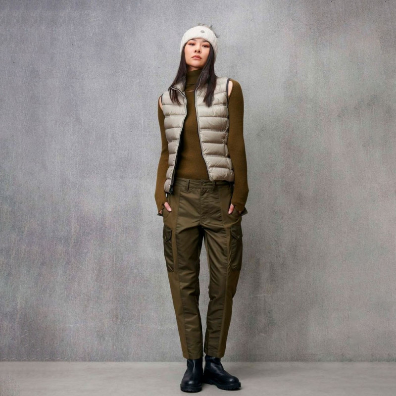 Chaleco acolchado repelente al agua con costuras horizontales simples y dobles alternadas. Prenda con relleno ligero, cálido y no voluminoso, con colores de moda y un corte que resalta la cintura.