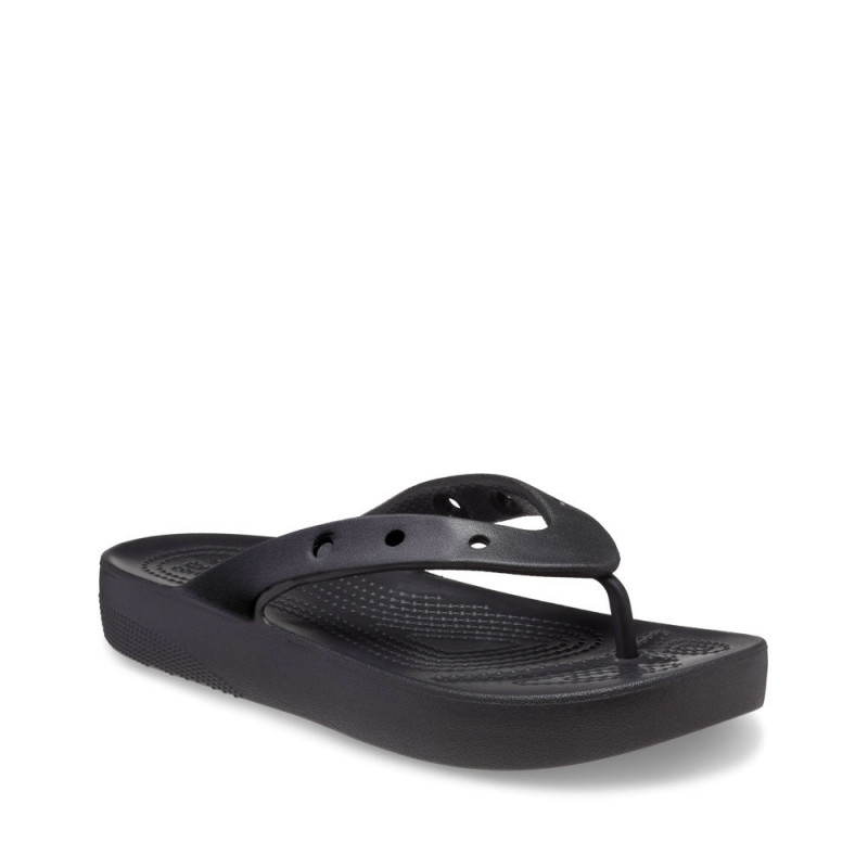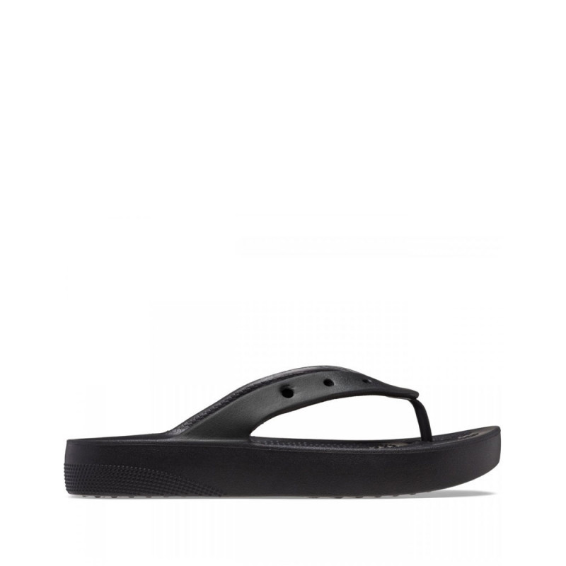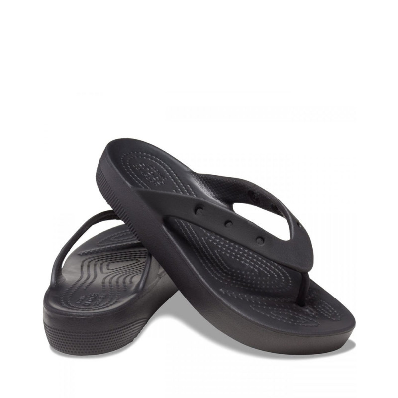 Presentamos las Classic Platform Flip: una elegante renovación de nuestras Classic Crocs Flip que cuenta con un tacón elevado y texturizado y seis agujeros en cada sandalia para permitir su personalización con charms Jibbitz™. La espuma Classic Croslite™™ amortigua cada paso y las mantiene ligeras y fáciles de llevar: así es como se está cómodo en tus propios zapatos.