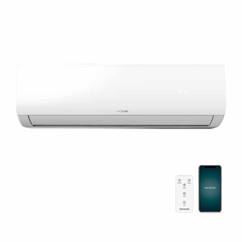 Aire acondicionado split de 9000 BTU con bomba de calor, mando a distancia y pantalla LED.