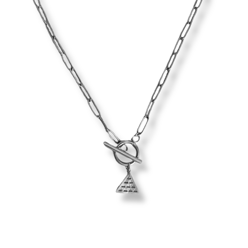 Collar hecho a mano con la pintadera canaria de acero inoxidable.