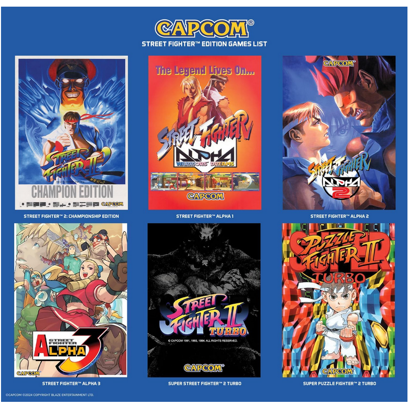 Consola Evercade retro clásica de Street Fighter que viene cargada con 6 títulos clásicos de Capcom incluyendo Street Fighter II' Champion Edition, Super Street Fighter II Turbo, la serie Street Fighter Alpha, ¡y mucho más!