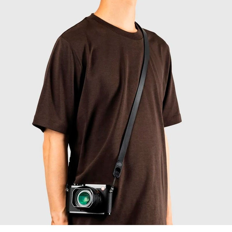 La correa para cámaras fotográficas Peak Design Form Leather Camera Strap Standard en color negro combina elegancia y funcionalidad para fotógrafos exigentes.