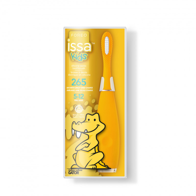 ISSA™ kids, cepillo de dientes sónico para niños de 5 a 12 añosEficaz contra la placa dental y delicado con las encías, ISSA™ kids es un cepillo de dientes diseñado con silicona de grado médico en atractivos colores, que activa pulsaciones sónicas para limpiar suavemente los dientes, la lengua y la boca.Tiene todos los beneficios de un cepillo eléctrico y ayuda a perfeccionar la forma correcta de cepillarse.Además, con una sola carga por USB permite 265 días de uso y el cabezal híbrido del cepillo dura hasta 6 meses. Además, ISSA™ kids tiene una divertida temática de animales y cuenta con ayudantes luminosos sonrientes, que guían y animan al niño durante la rutina de 2 minutos de limpieza bucal.¡El cepillado no tiene por qué ser algo aburrido!Beneficios• Masajea las encías, limpia los restos de comida y calma el dolor en el proceso de la dentición• Las pulsaciones sónicas y los suaves filamentos de silicona cepillan con delicadeza los dientes de leche• La carita feliz y la carita triste ayudan a establecer buenos hábitos de cuidado bucalEspecificaciones• Fabricado con silicona de grado médico, sin ftalatos ni BPA• Incluye 2 modos de funcionamiento y caritas ayudantes• Una carga USB alcanza para 480 usos• 100% resistente al agua y con 3 años de garantía limitada• El estuche contiene: 1 cepillo de dientes ISSA™ kids, 1 cable de carga USB, 1 manual de la gama ISSA™