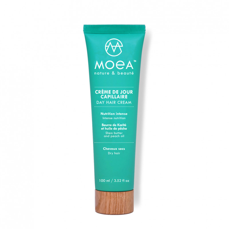 La crema de día para cabello MOEA para cabello seco no requiere enjuague. Al igual que tu crema de día para el rostro, la crema de día para el cabello hidrata, nutre y protege tu cabello.La crema de día MOEA HAIR contiene lo siguiente:Manteca de karité, que tiene propiedades nutritivas y protectoras y los ya celebrados beneficios de este preciado regalo de la naturaleza: un cabello más suave, hidratado y protegido de las agresiones externas.Aceite de melocotón conocido por sus propiedades nutritivas, regeneradoras e hidratantes.El activo Amisol Trio™ que repara el cabello en toda su longitud y previene las puntas abiertas.