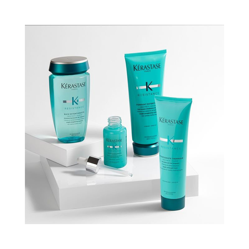 Extentioniste es una gama dirigida a aquellas personas que buscan conseguir una largura sana y fuerte. Gracias a la innovación tecnológica Kérastase, descubre la clave para alcanzar esta largura ideal, inspirándose en los complementos nutricionales de los deportistas de alto rendimiento protege las puntas contra la rotura.Instrucciones de usoDespués de lavar y tratar y secar con una toalla el pelo, aplicar una pequeñacantidad en las manos, distribuir comenzando por las puntas y terminando porlos largos. Proceder al peinado.
