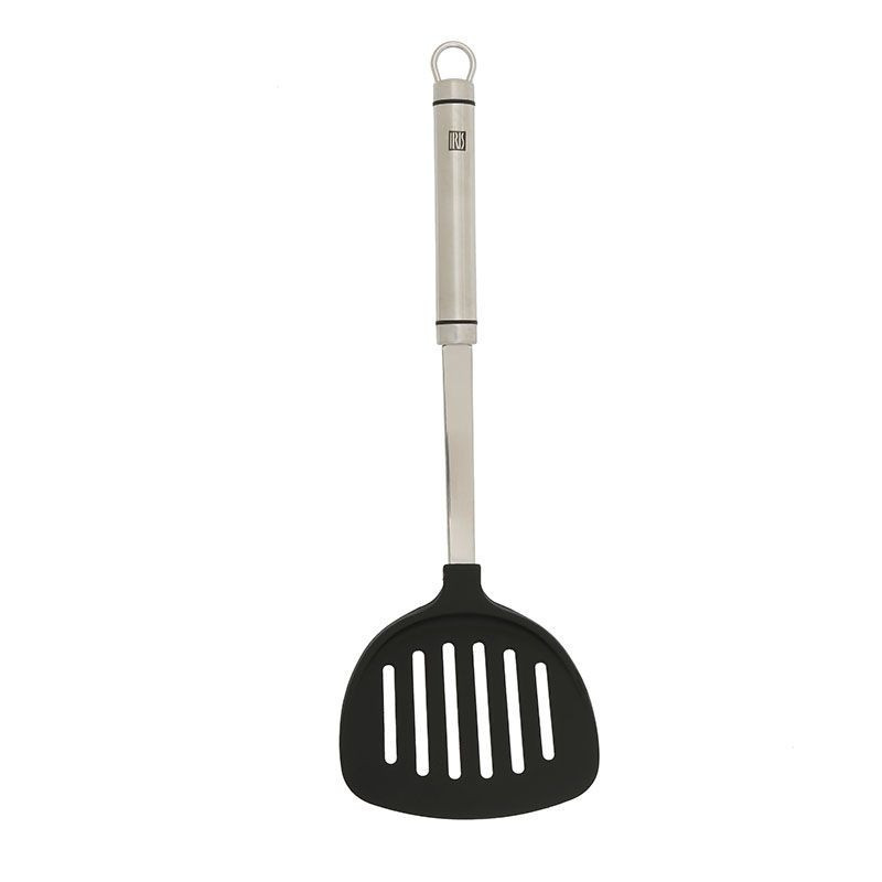 Espumadera de cocina con cuerpo de acero inoxidable y paleta de nylon.Dispone de aro en su parte superior para facilitar ser colgado.