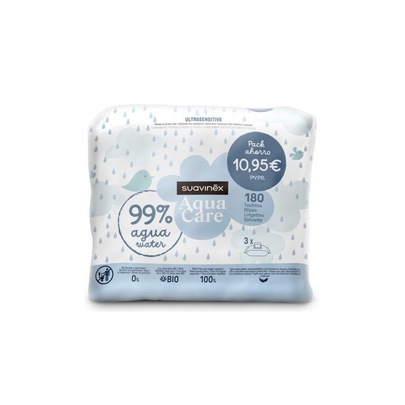 SUAVINEX Toallitas Aqua Ultrasensitive 3 Envases 60 Toallitas Pack