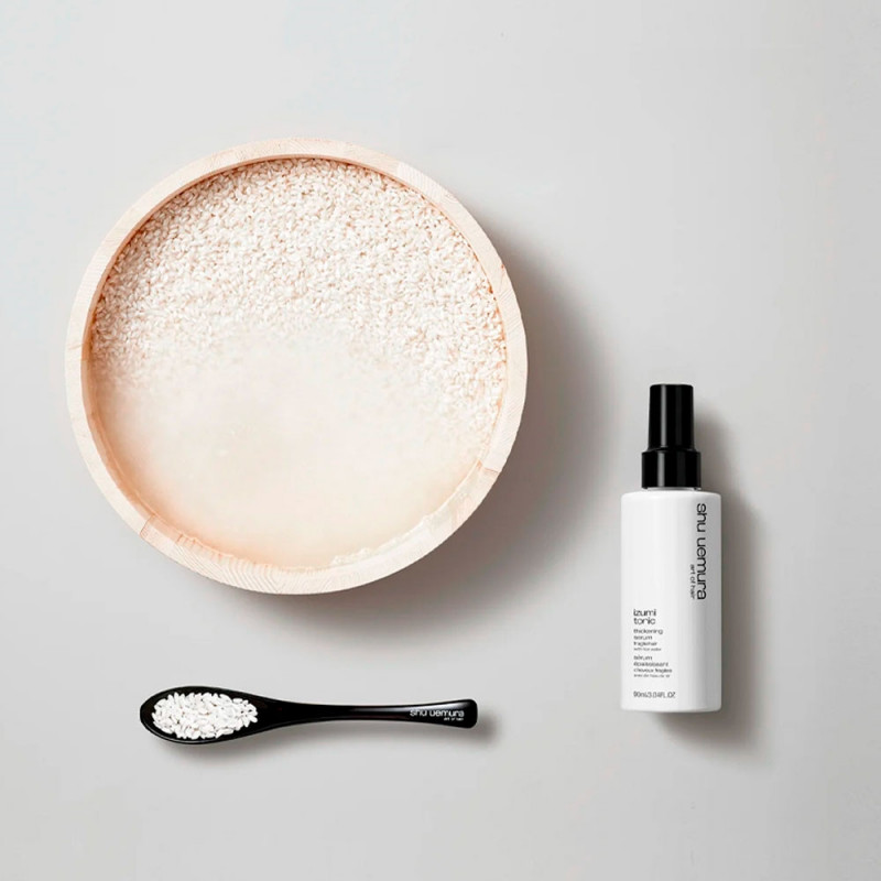 Izumi - fuente en japonés - tonic está inspirada en la tradición japonesa de belleza capilar yu-su-ru, que consiste en bañar el cabello en agua de arroz. Este secreto de belleza permitía a las mujeres japonesas dejar crecer su cabello hasta el suelo, manteniéndolo sano y fuerte. Gracias a su fórmula profesional de alta eficacia, con extractos de arroz japoneses de origen sostenible y ceramida, Izumi Tonic ofrece un tratamiento ligero y potente para fortalecer el cabello instantáneamente. Los extractos de arroz son ricos en aminoácidos, vitaminas B y E, así como en minerales y antioxidantes.