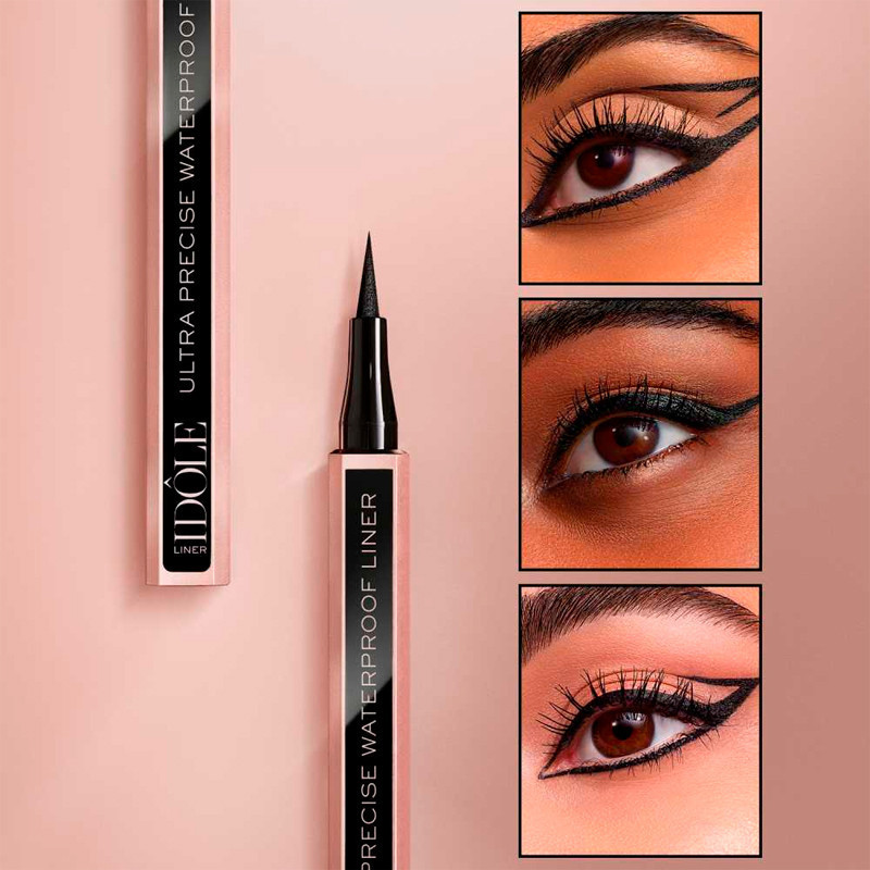 Lancôme ha creado el Liner Idôle Waterproof, el aliado perfecto para conseguir una mirada imparable. El delineador de ojos resistente al agua de con el que conseguirás trazar desde líneas atrevidas hasta ultrafinas Gracias a la su tecnología que contiene una exclusiva punta de fieltro ultrafina y flexible que dibuja una línea fina de hasta 0,1 mm que permite un acceso perfecto a la línea de las pestañas con una aplicación ultra precisa. La máxima precisión en un envase que cambia las reglas del juego. Fácil de controlar gracias al ergonómico e icónico envase idôle. Liner Idôle Waterproof consigue una línea negra uniforme y continua en un solo trazo gracias a su alta concentración de pigmentos luminosos de carbón que contiene su fórmula.