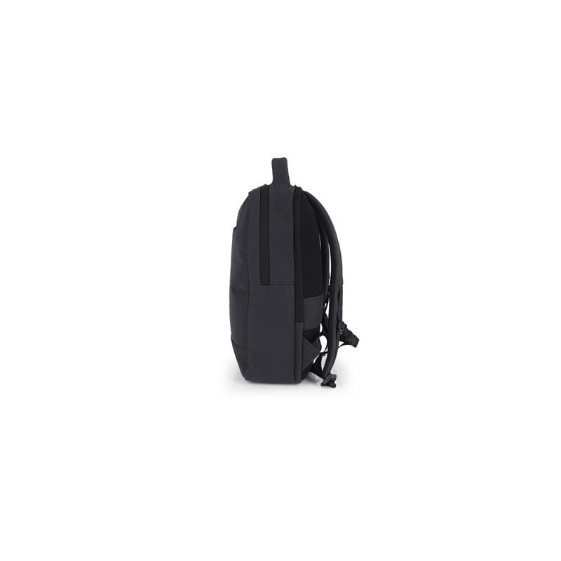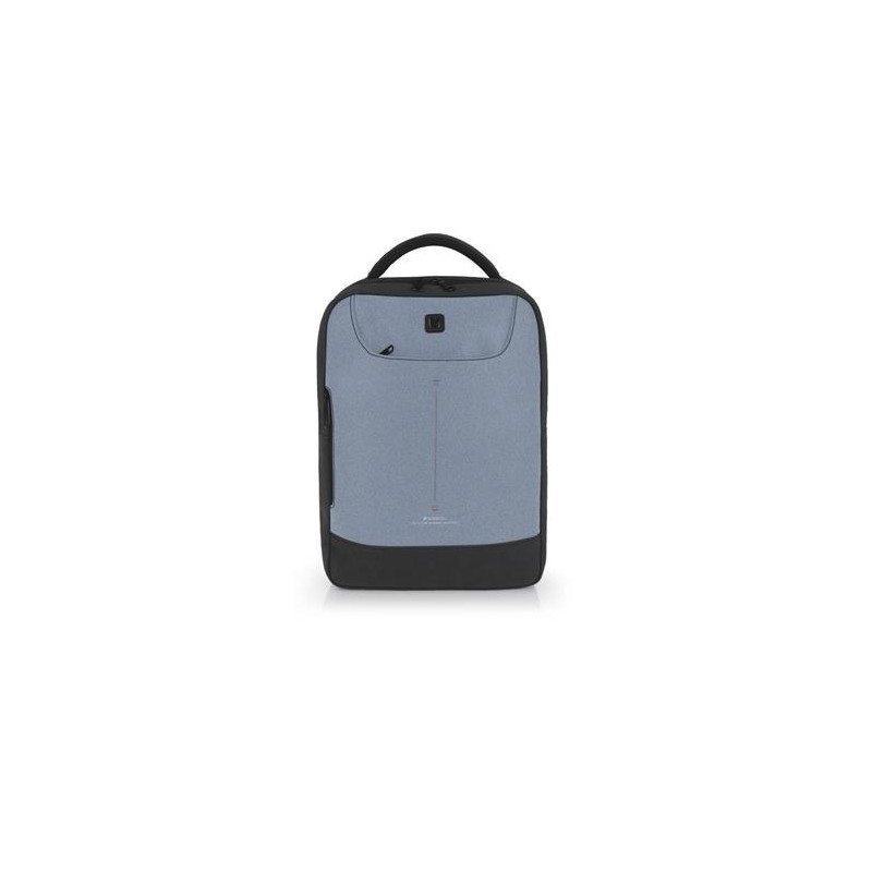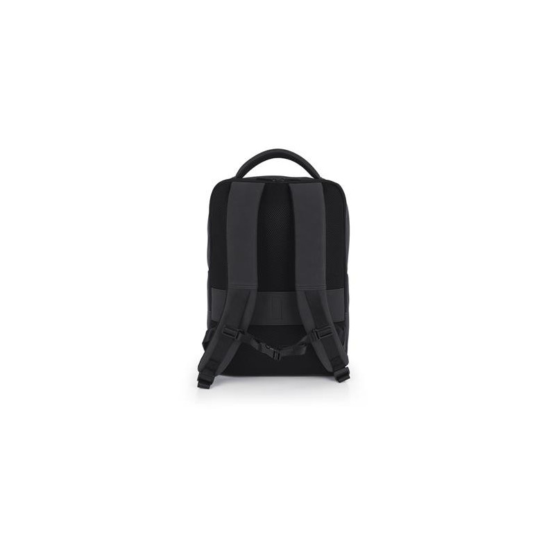 Mochila para portátil de 15,6´´ con 2 compartimentos. Material reflectante de piel sintética libre de plásticos PVC. Interior acolchado con compartimento para portátil y organizador. Acople para maleta en la parte trasera. Cinta de sujección al pecho. Medidas: 43x31x12 cm. Capacidad de 14 L.
