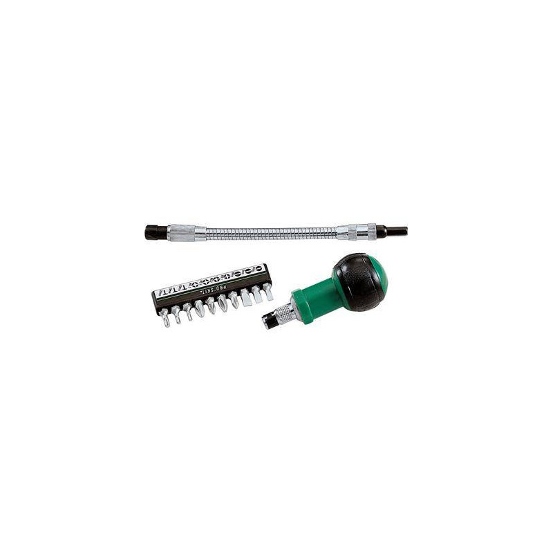 Piezas: Mango con carraca, 10 Puntas 1/4""x30,0mm y Extensor