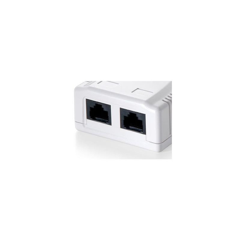 La caja montada en superficie equip® con dos puertos RJ45 admite dos conexiones Cat.6. Este producto está empacado con una pieza de cinta adhesiva que le permite instalar la caja montada fácilmente, sin necesidad de herramientas.