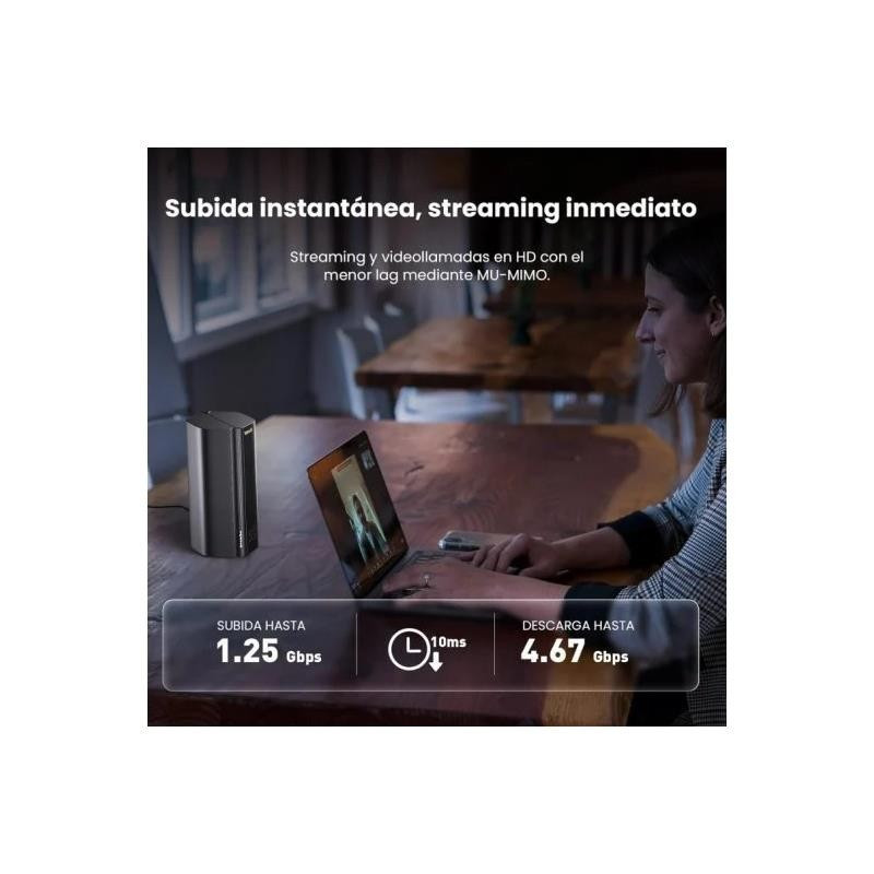 - Router 5G NR con velocidad de datos de hasta 4.67 Gbps/1.25 Gbps (descarga/subida). Streaming y videollamadas en HD con el menor lag.