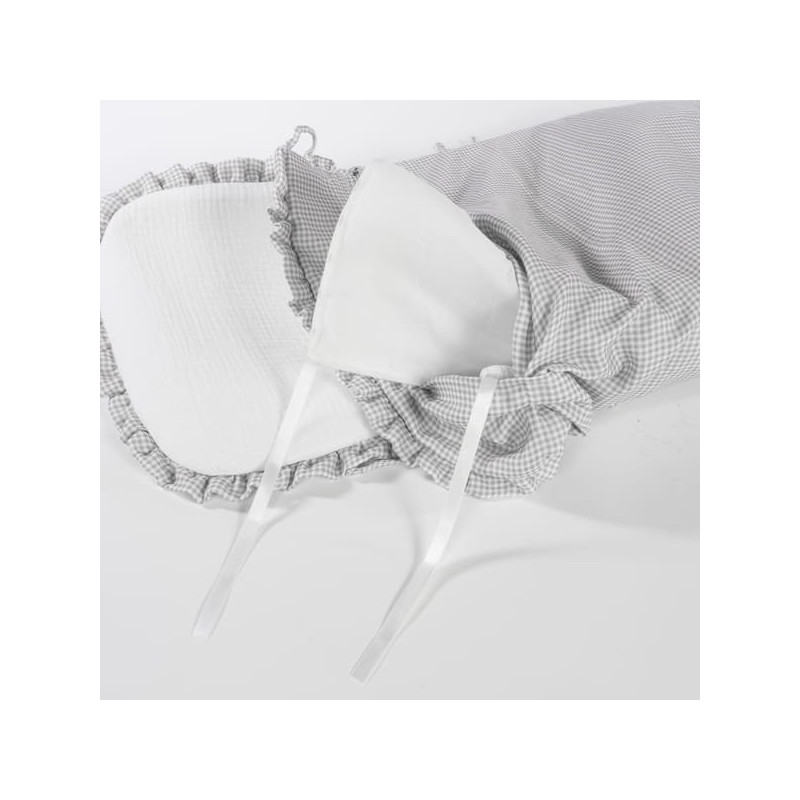 - Su delicado diseño combina muselina estampada y muselina lisa 100% algodón, aportando ligereza, transpirabilidad y un tacto natural ideal para la piel del recién nacido. Incorpora una colchoneta interior con tejido 3D, que mejora la ventilación y el confort durante el descanso.