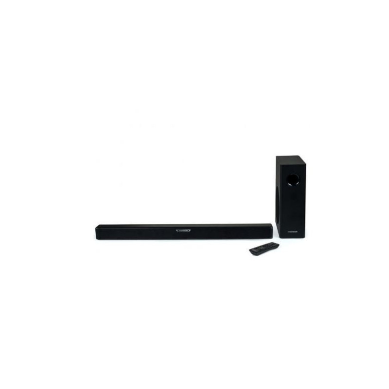 Déjate tentar por esta magnífica barra de sonido inalámbrica de THOMSON y sus profundos graves. ¡Con su diseño único, esta barra de sonido de 80 cm transformará tu salón en un Home Cinema perfecto para pasar horas de placer! Te sumergirás por completo en tus películas, tus videojuegos o escuchando tu música favorita.