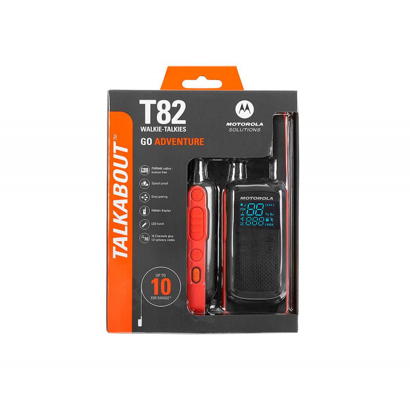 Motorola T82 los walkie talkies Motorola TLKR T82 le permiten beneficiarse de comunicaciones gratuitas entre terminales. Se trata de un walkie- talkie de fácil uso, imprescindible para muchos profesionales (recepciones, grandes superfícies, hoteles,seguridad, restauración, aeropuertos, complejos deportivos...)