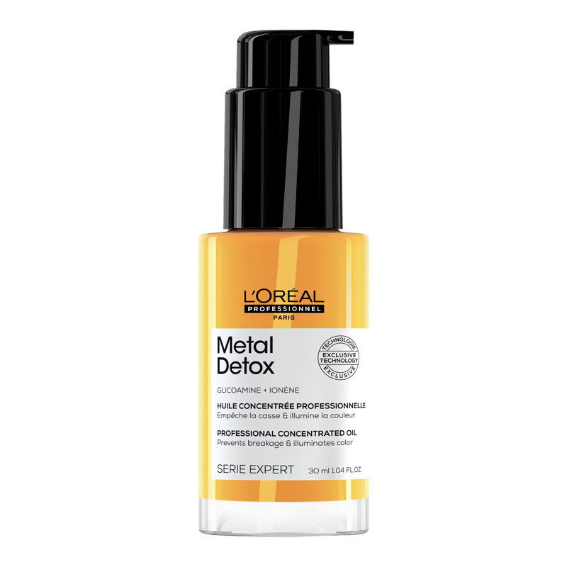 Descubre el poder concentrado del Metal Detox - Aceite de L'Oréal Professionnel, un tratamiento diario sin aclarado diseñado para proteger tu cabello de la acumulación de partículas metálicas presentes en el agua. Enriquecido con Glicoamina, este aceite ligero nutre, suaviza y fortalece la fibra capilar al instante, preservando la intensidad y el brillo del color, a la vez que ofrece protección contra el encrespamiento y el calor.