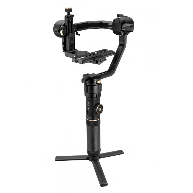 El CRANE 2S también admite una variedad de accesorios Zhiyun-Tech TransMount dedicados, que incluyen servomotores. La placa de liberación rápida incluida con el cardán es compatible con muchos cabezales de trípode comunes para que pueda mover de manera eficiente su cámara entre el cardán y los trípodes, controles deslizantes y otros soportes de cámara. También se incluyen un control de lente y varios cables de control de cámara para permitir un flujo de trabajo completo. El CRANE 2S funciona hasta 12 horas con tres baterías incluidas, que son recargables con un cargador triple incluido.