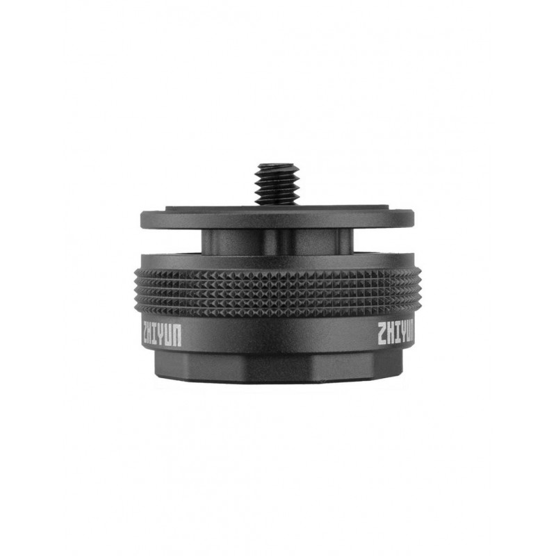 Consta de dos piezas con rosca universal de 1/4 de pulgada y un cómodo mecanismo de conexión entre ambas para no tener que enroscar y desenroscar cada vez el trípode o monopié al gimbal (una pieza se conecta al estabilizador y otra al trípode o monopié, quedando estas conectadas entre ellas)