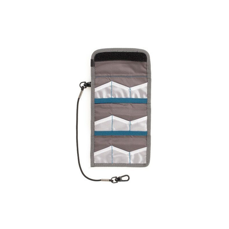 La billetera azul para tarjetas SD de recarga de la serie Tenba Tools lleva hasta nueve tarjetas SD o Micro SD estándar más un adaptador, por lo que se mantienen seguras y organizadas al tiempo que eliminan la molestia de tener que buscar en su bolso tratando de encontrarlas. Tiene una solapa trasera de velcro que se conecta a un cinturón, una correa para el hombro, un arnés de mochila u otros bucles compatibles con MOLLE para tener sus tarjetas a mano. Los bolsillos en ángulo facilitan la extracción rápida de las tarjetas, y el cable de seguridad incluido se conecta a un anillo en D en una bolsa o trípode para mayor seguridad. Un bolsillo transparente en la parte posterior proporciona almacenamiento para tarjetas de visita.
