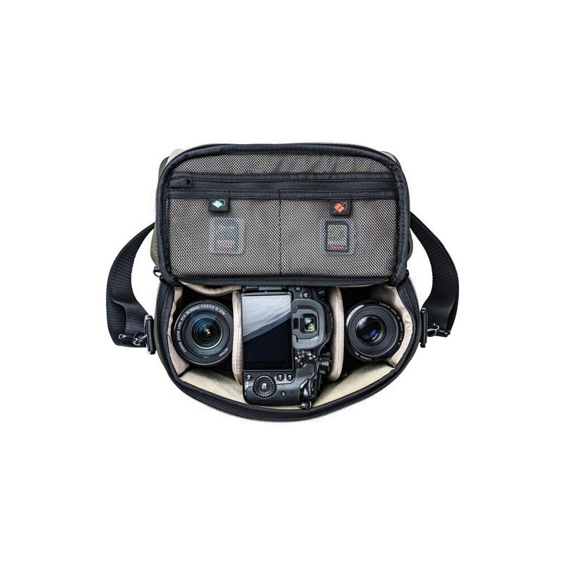 Cuando viaje con ligereza, desea que su bandolera se ajuste perfectamente al equipo que lleva dentro. El VEO SELECT 22S está diseñado con amplios divisores modulares para proteger una réflex digital con una lente colocada, 1-2 lentes, un flash, accesorios esenciales e incluso una mini tableta. Los bolsillos internos y externos ubicados estratégicamente lo ayudan a organizar otros elementos esenciales: tarjetas de memoria, cables, batería, cargador y más, ya sea asegurados en un compartimento con cremallera o a mano en cualquier momento en un bolsillo deslizable. Un bolsillo con cremallera en la parte posterior, junto con un pequeño bolsillo "secreto" debajo de la solapa frontal, ofrecen un almacenamiento seguro para objetos de valor personales como un pasaporte, billetera y teléfono inteligente.