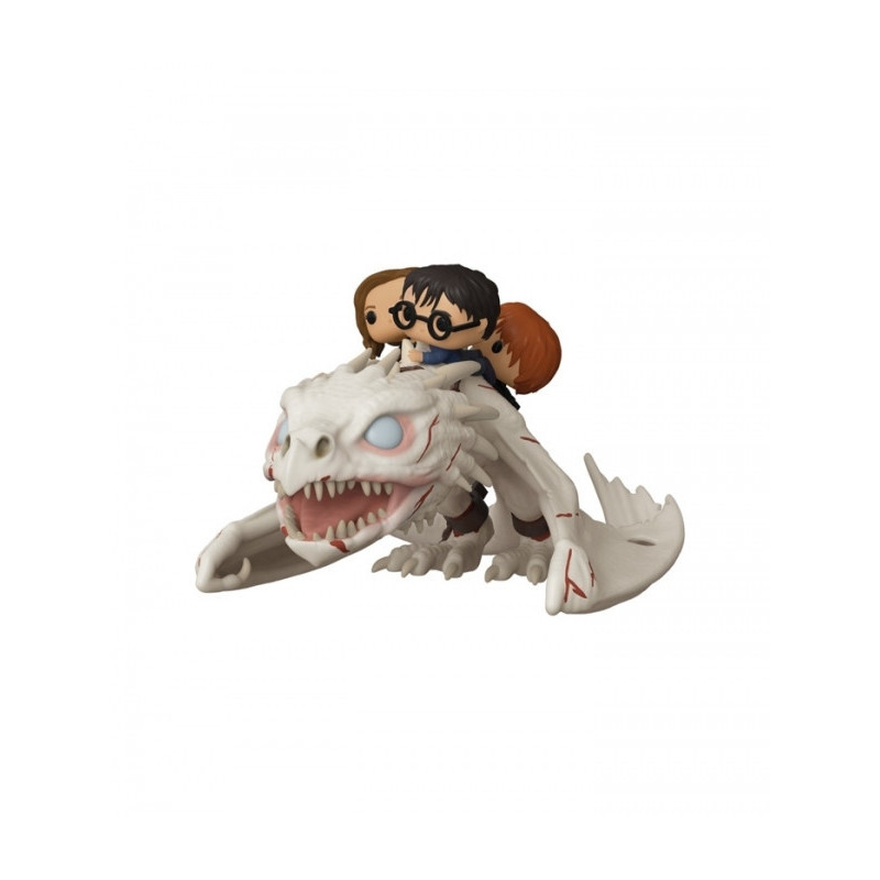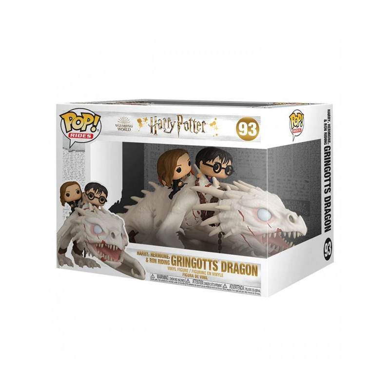 Funko con Harry, Ron y Hermione a lomos de un dragón ukraniano. 10 cm de alto.
