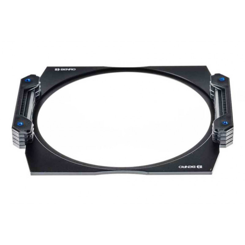 El innovador portafiltros de aluminio de Benro. Con este portafiltros es posible operar un filtro polarizador mientras se colocan otros filtros. Además del filtro de polarización, hay espacio para otros 2 filtros de 150 mm de ancho y 2 mm de espesor.