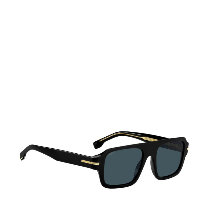Unas gafas de sol BOSS con carácter elaboradas en acetato negro con detalle metálico dorado de la marca en las patillas.