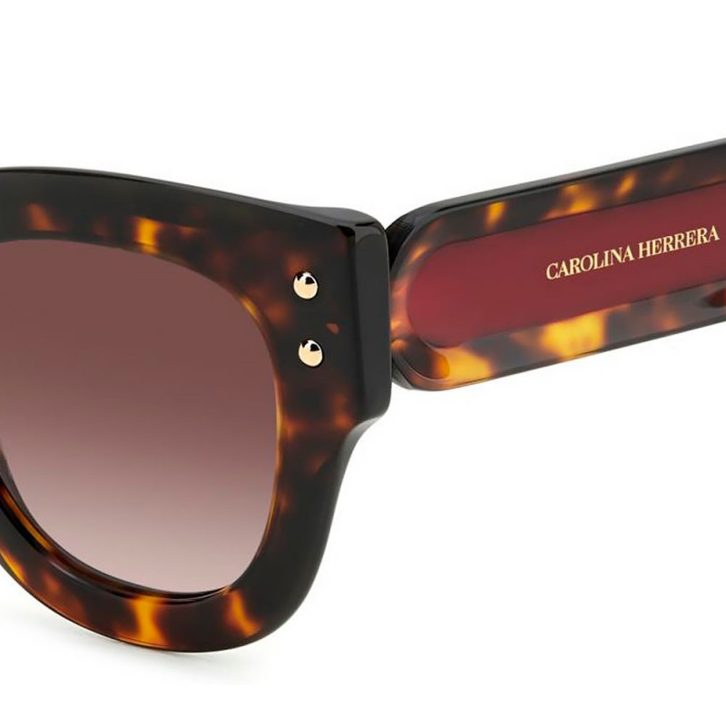 Las gafas de sol Carolina Herrera presentan un estilo elegante, confeccionadas en materiales ligeros que proporcionan comodidad y durabilidad. Los detalles de la marca, presentes en las patillas, los terminales y la parte delantera, añaden un toque distintivo y sofisticado a este accesorio de moda.