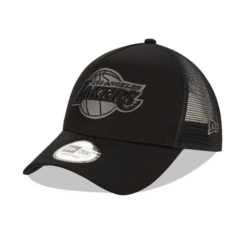 ¡Adquiere ahora la gorra oficial New Era de LA Lakers Black on Black 9FORTY A-Frame Trucker y prepárate para apoyar a tu equipo con estilo y confianza en cada partido!