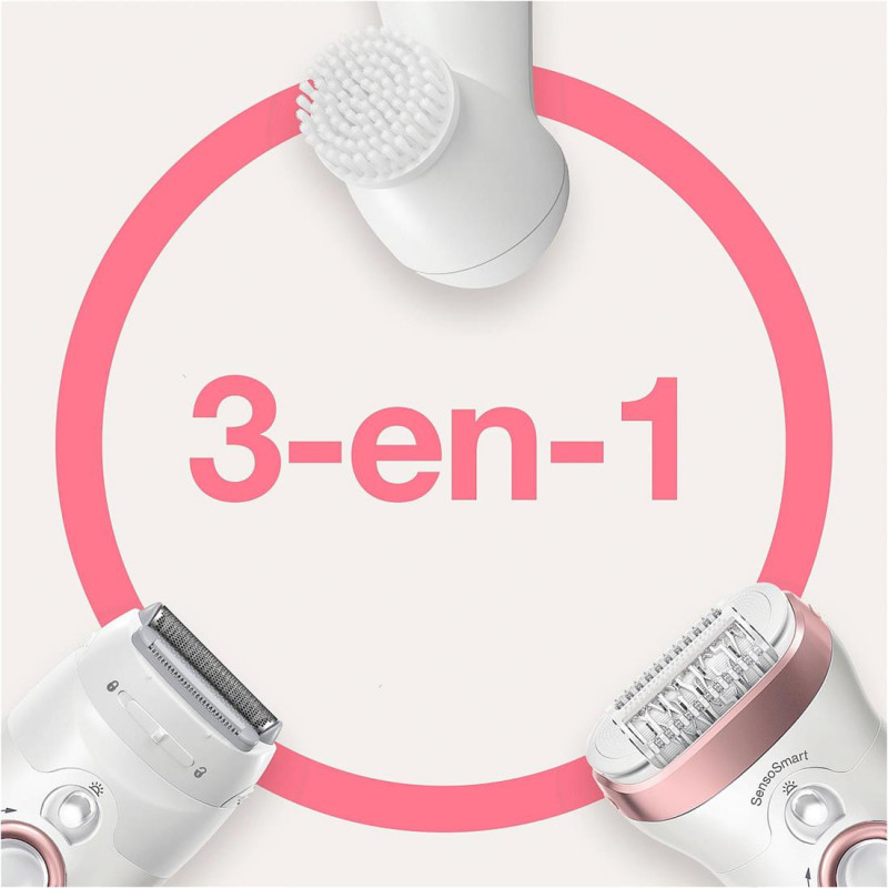Una de las características destacadas de la Braun SES9-855 es su tecnología SensoSmart, que garantiza una depilación más eficiente al indicar con una luz roja si estás aplicando la presión correcta durante la depilación. Esto asegura un resultado óptimo y evita irritaciones en la piel.