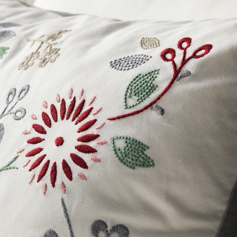 Al tener botones, te resultará fácil quitar la funda.El bordado aporta brillo y textura al cojín.Con diseños diferentes por cada lado para que puedas variar.El relleno de plumas de pato resulta mullido y proporciona un excelente soporte a tu cuerpo.