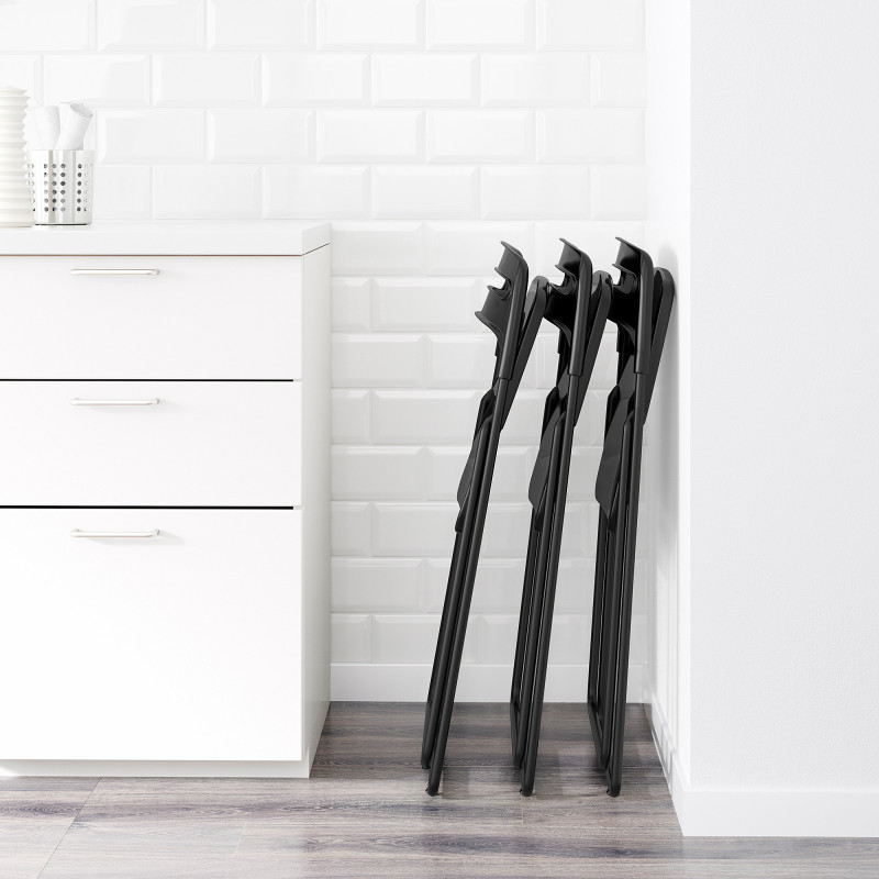 Gracias a la forma del respaldo y el asiento, la silla resulta muy cómoda.Cuelga la silla en un gancho en la pared para ahorrar espacio.La silla está disponible en distintos colores. Elige tu preferido o combina varias de diferentes colores.Al ser plegable, ocupa menos espacio cuando no la usas.