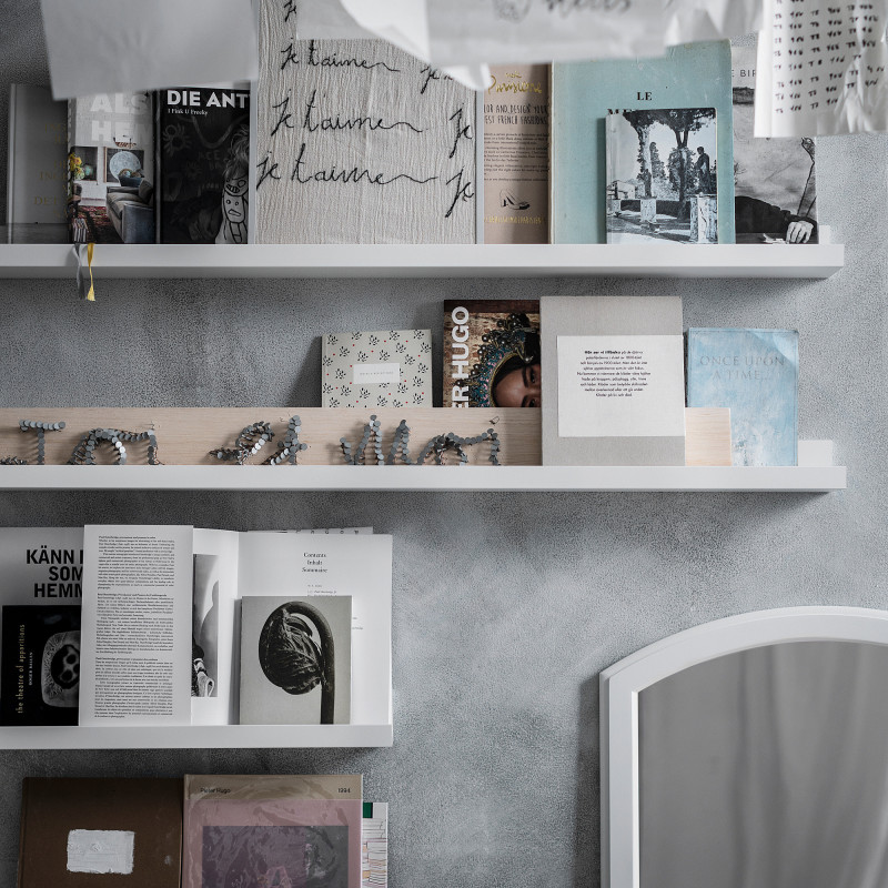 El estante para cuadros tiene una ranura diseñada para que todos los marcos, incluso los más pequeños, se coloquen en el ángulo ideal.La moldura del cuadro facilita que cambies los motivos siempre que quieras.