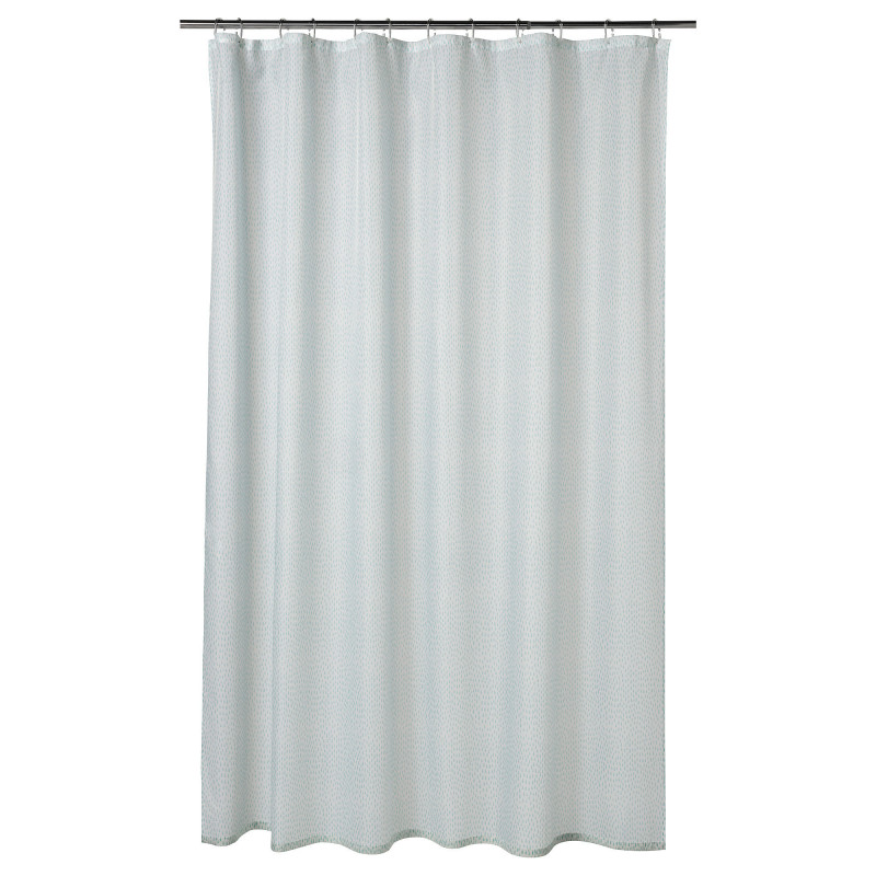 El motivo de gotitas da un toque fresco y alegre al baño. Estas cortinas de ducha hechas de poliéster 100% reciclado utilizan los residuos como recurso.