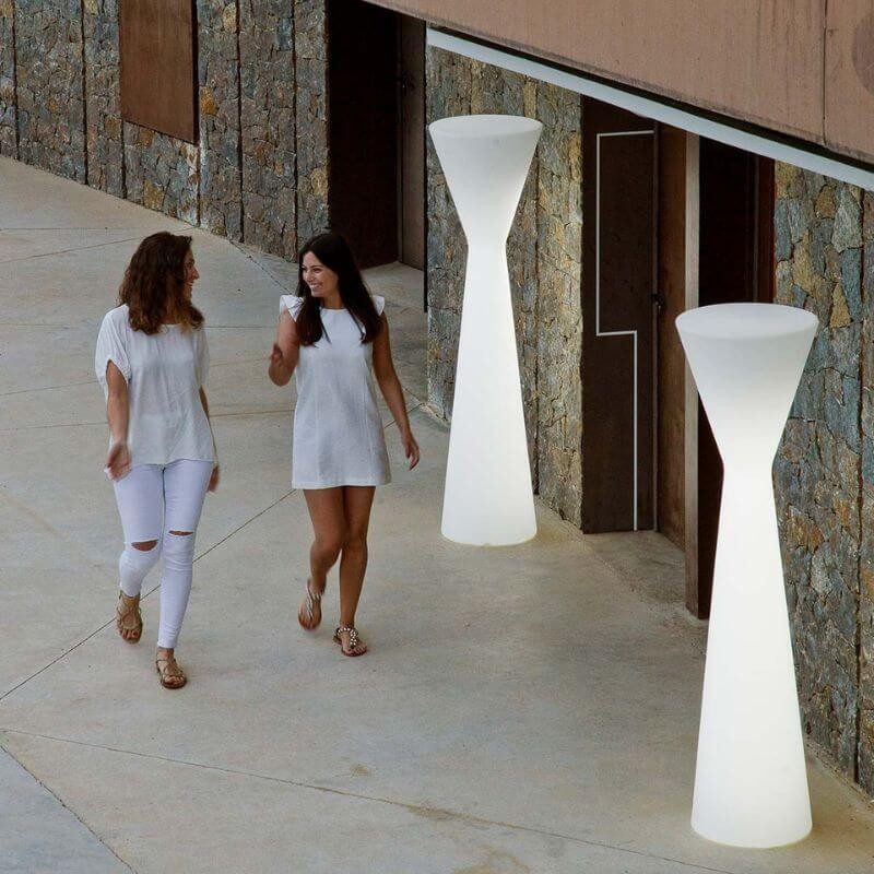La lámpara de jardín KÓNICA es una lámpara perfecta para interior y exterior e, incluso, para zonas anexas a una piscina. Es una lámpara en la que predominan las formas cónicas y la geometría. Ofrece una luz blanca que emite en todas direcciones. Esta lámpara ilumina su superficie al completo y en sí misma, se convierte en un elemento decorativo. Cuenta con un cableado indicado para exterior. No tendrás que depender de la duración de una batería para disfrutar de una espectacular iluminación de tu terraza.