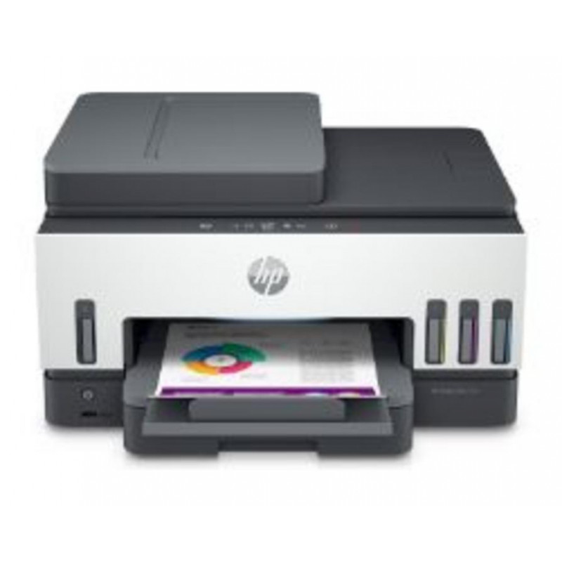 Descubre la Impresora Multifunción HP Smart Tank 7605, perfecta para el hogar o la oficina. Disfruta de impresiones a color vibrantes y texto nítido con una resolución de 4800x1200dpi. Equipada con pantalla LCD, ADF, conectividad WiFi 5, Bluetooth, Ethernet y fax dúplex, ofrece versatilidad completa. Su diseño en blanco y gris se adapta a cualquier espacio.