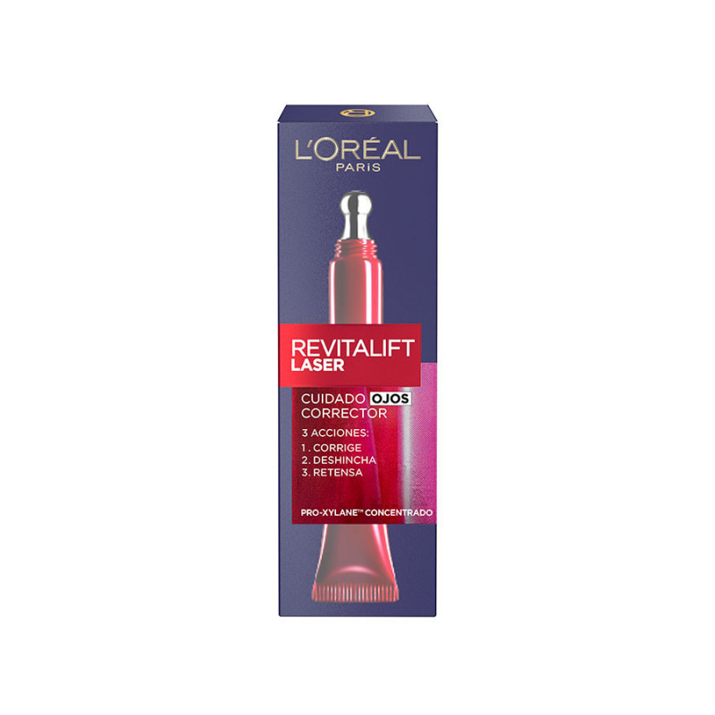 Corrige arrugas de los ojos, deshincha las bolsas y retensa la piel del contorno. Con Pro-xylaneTM. Textura fluida, no grasa.Modo de aplicación Cuidado Ojos RevitaliftAplicar día y noche sobre la piel limpia. Presionar el tubo y masajear generosamente el contorno del ojo con el aplicador de metal realizando movimientos desde el interior hacia el exterior de los párpados.Ocasión de usoDiariaBeneficios del productoInmediatamente la piel del contorno de los ojos está más lisa e iluminada. Las bolsas son menos visibles. En 3 semanas las arrugas se reducen significativamente, y tras 4 semanas el contorno del ojos está más firme y tonificado.Formulación DermatológicamenteIngredientes destacados del productoConcentrado en Pro-xylaneTM, activo anti-edad patentado por la investigación L Oréal que ayuda a corregir las arrugas y redensificar la piel