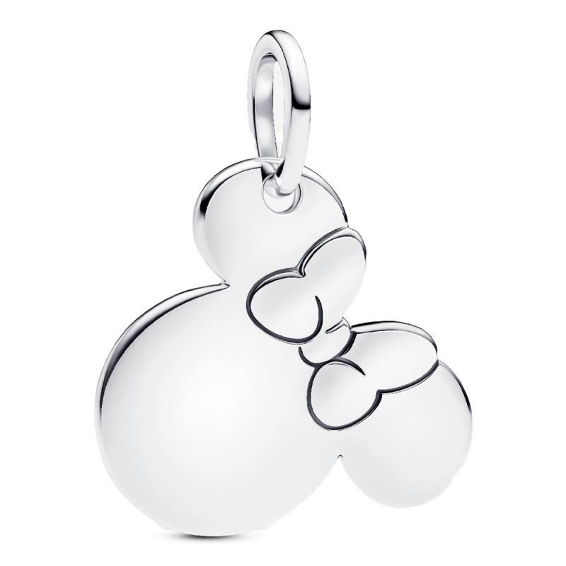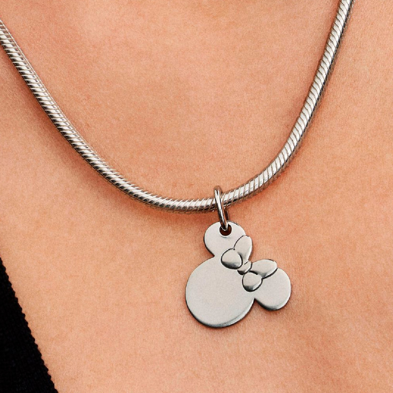Presentamos el primer colgante grabable de Disney x Pandora, con la icónica silueta de Minnie Mouse en plata de ley.